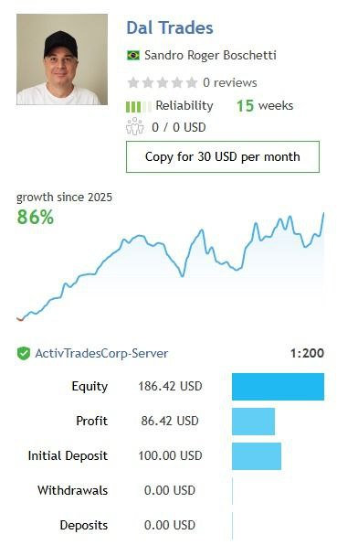 O resultado apresentado abaixo refere-se a uma das contas do Copy Investing, iniciada em 20/11/2025, na qual as operações são realizadas com alavancagem equivalente ao dobro (2x) daquela utilizada no modelo padrão do Copy Investing.